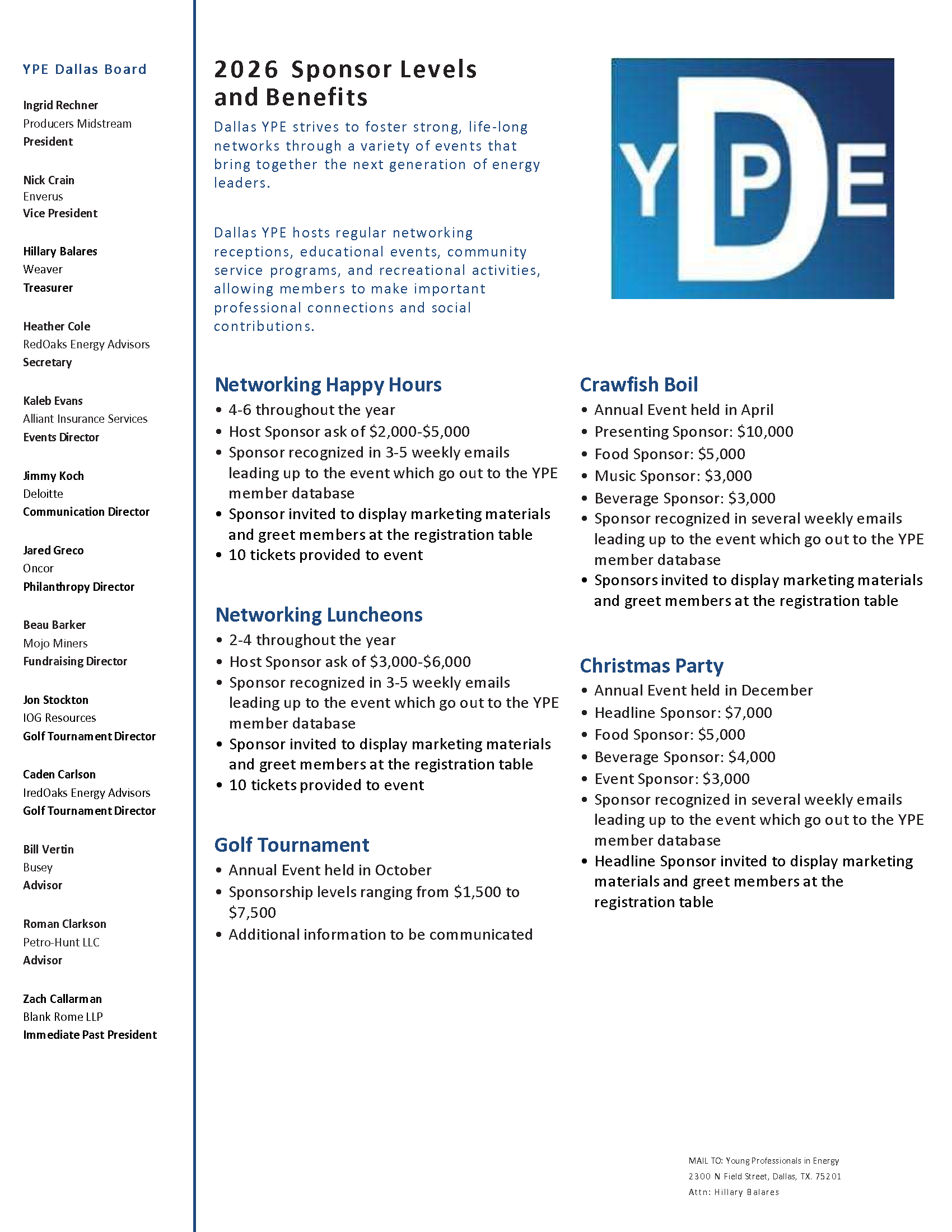 Relationships are critical in the energy industry. YPE Dallas strives to foster strong, life-long networks by bringing together the next generation of energy leaders. We host a variety of events throughout the year—including our annual golf tournament, networking happy hours, and industry-focused panels—allowing members to unwind while building important professional connections and making meaningful community contributions.